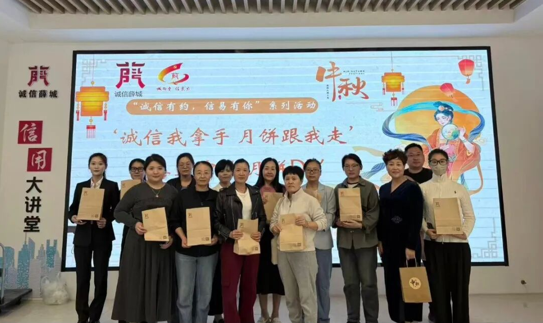 为深化社会信用体系建设、厚植诚信文化根基,进一步提升全区机关工作人员的信用意识与践行自觉,9月29日,薛城区社会信用中心以中秋佳节为契机,创新开展“‘诚信我拿手 月饼跟我走’喜迎中秋 月饼 DIY”主题活动。活动邀请来自不同单位的20名“榴花?薛城分”AA级以上职工代表参与,在传统民俗体验中感悟诚信力量,为社会信用体系建设注入文化动能。
