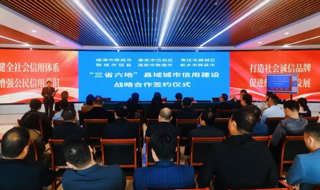 10月13日,“三省六地”县域城市信用发展联盟战略合作签约仪式在河南省辉县市隆重举行。枣庄市薛城区作为联盟核心成员,与山东省威海荣成市、泰安岱岳区、聊城冠县,河南省辉县市及甘肃省酒泉敦煌市共同签署信用建设战略合作协议,标志着由薛城区深度参与的县域信用合作,从省内“海岱联盟”实现跨区域升级,正式迈入多省协同发展的新阶段。