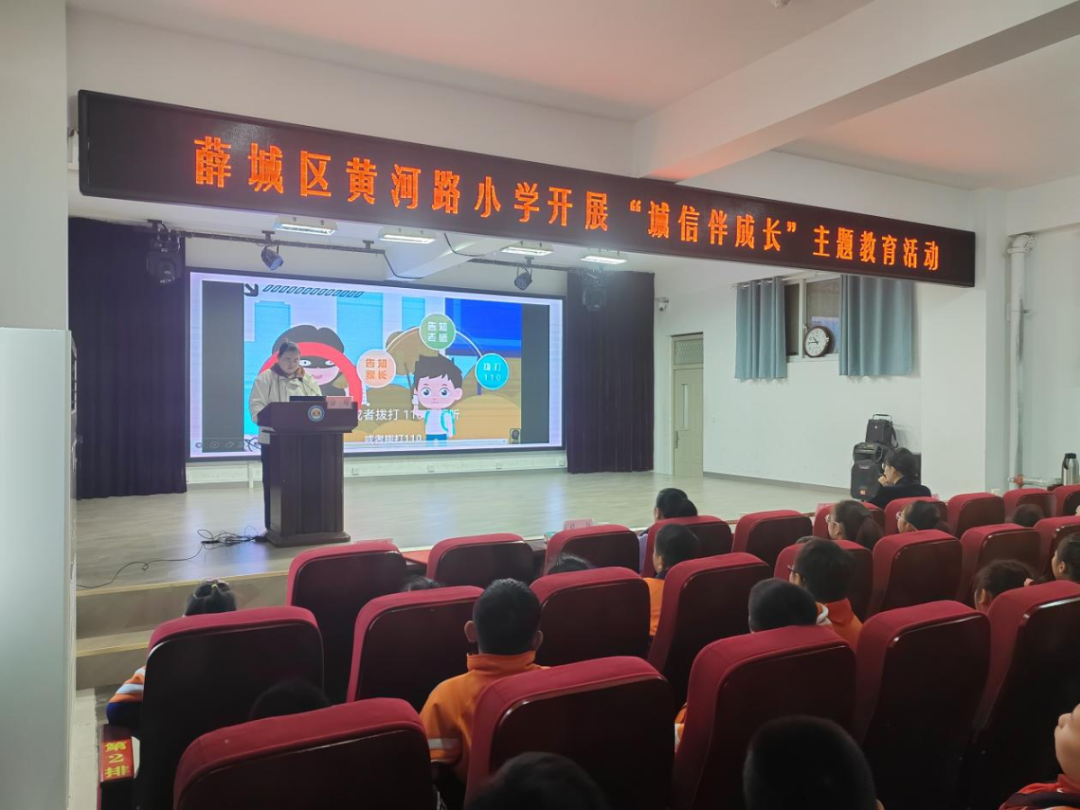 近日,薛城区新城街道联合黄河路小学开展“诚信伴成长”主题教育活动,特邀薛城区社会信用中心徐瑶主任走进校园,为同学们带来“做个诚实守信的小市民”专题课堂,将诚信的种子播撒在青少年心间。