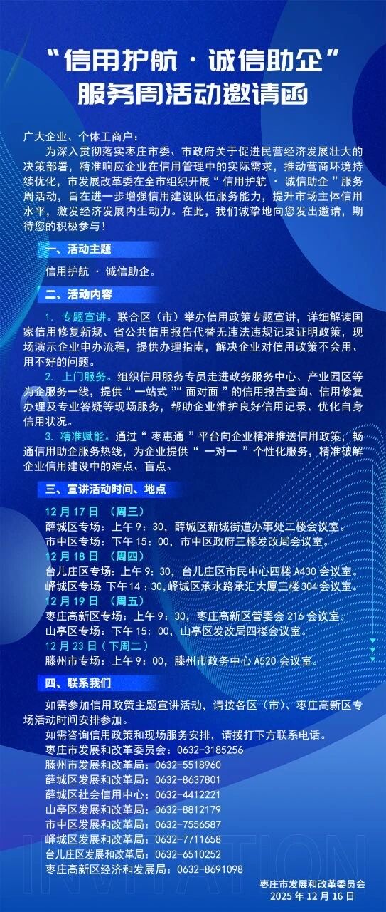 诚邀您参与!枣庄市“信用护航·诚信助企”服务周活动来了